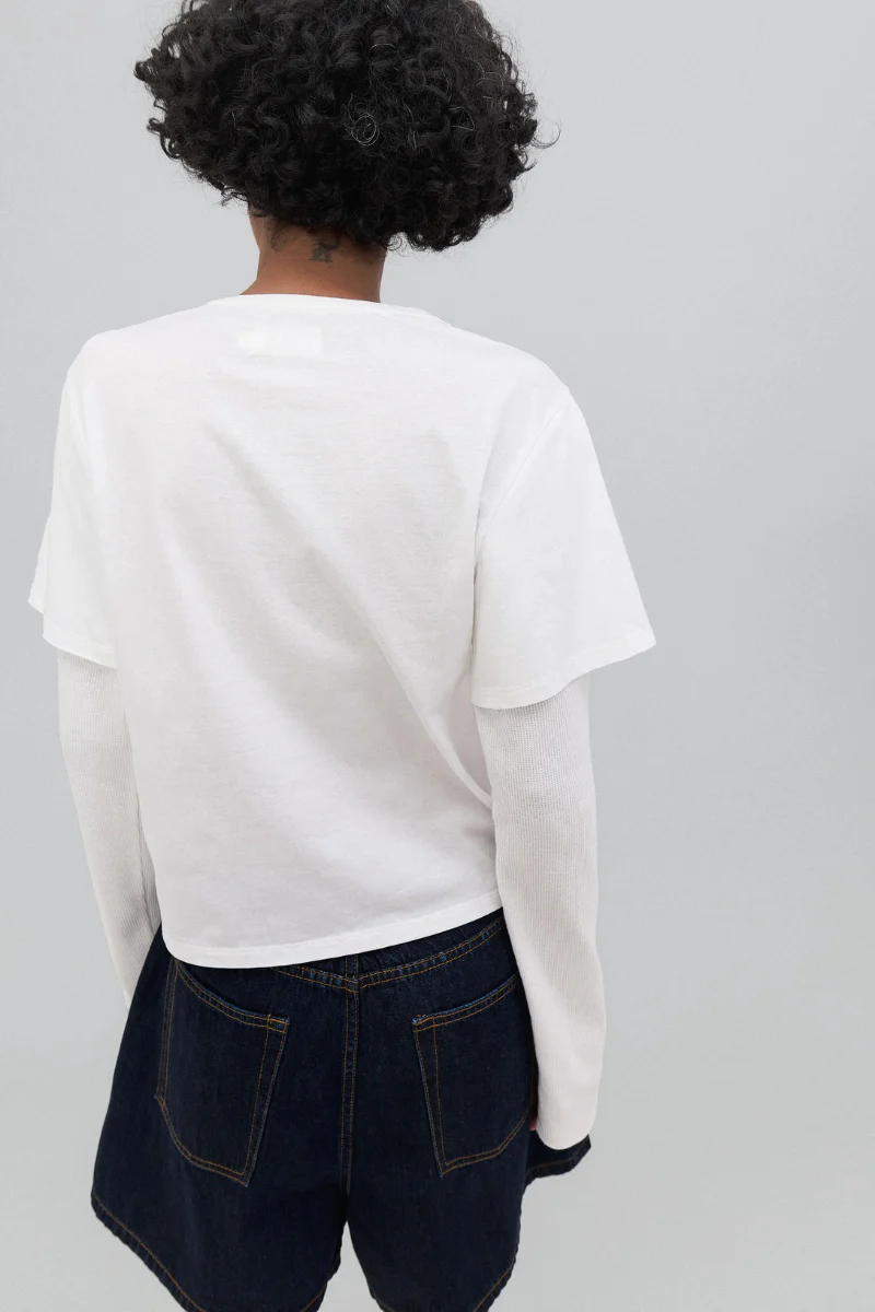 Inspired by 90's styling, the 2Tee is a double layered crew neck tee. It is a slightly boxy and loose fit.