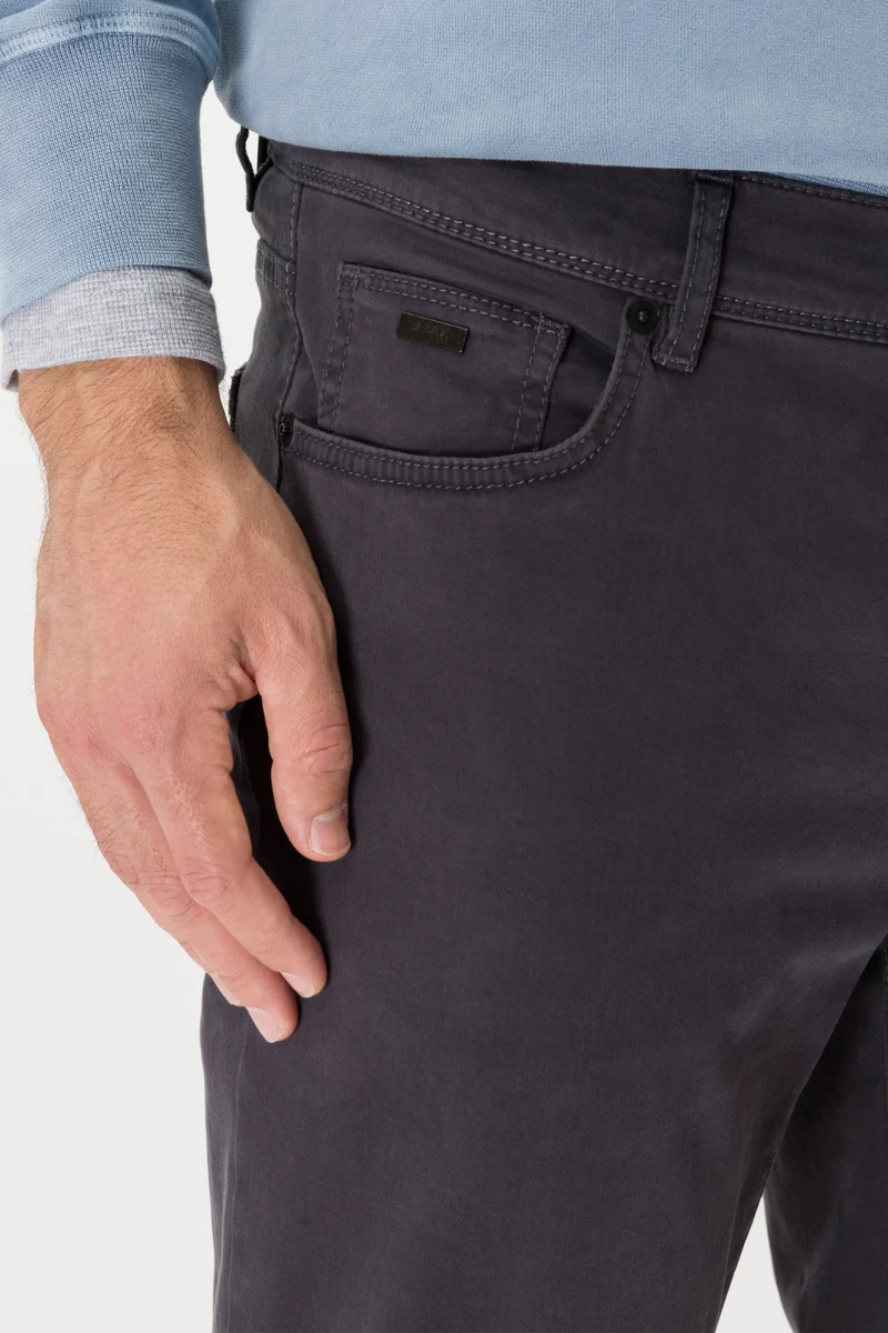 Exclusive by BRAX: The Marathon fabric. Extra-fine and durable fibers are spun round state-of-the-art elastane yarns for real feel-good moments. Moreover, satin stands for luxurious shine and soft touch, with a flowing drape. The atlas weave is the secret to this lustrous fabric. The sustainable, resistant and skin-kind cotton mix also offers a perfect feel with these five-pocket pants.