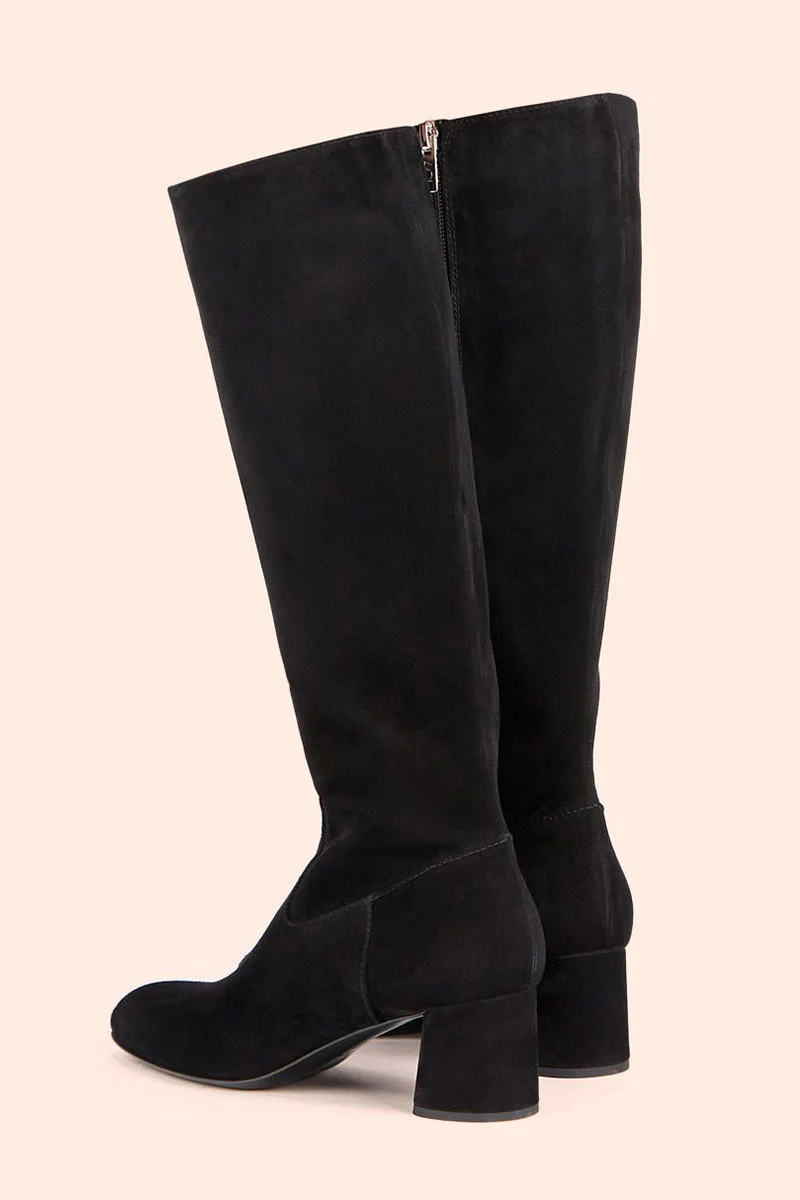 Lorette is a suede boot characterized by simple, minimalistic design with a focus on detail. The shaft is soft and snug, with a zipper on the inside to make it easy to put on. The medium-height heel, also covered with suede, adds extra comfort to this elegant creation; perfect for a long, busy day.