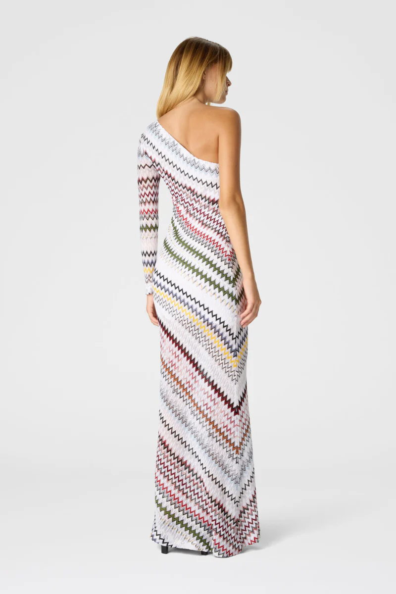 One-Shoulder Micro Chevron Gown