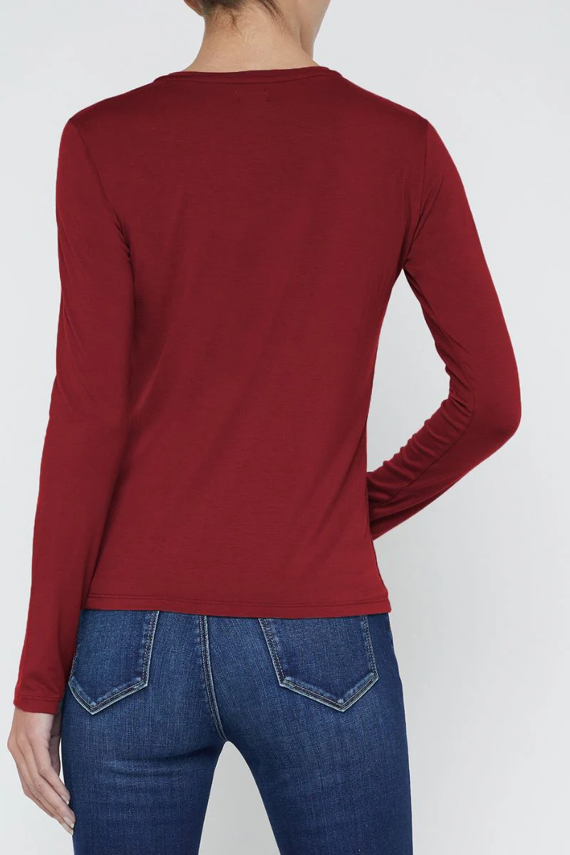 So soft, you’ll never want to take it off. Worn alone or layered, Tess is the versatile long sleeve tee that will carry you through the season, now in dark red.